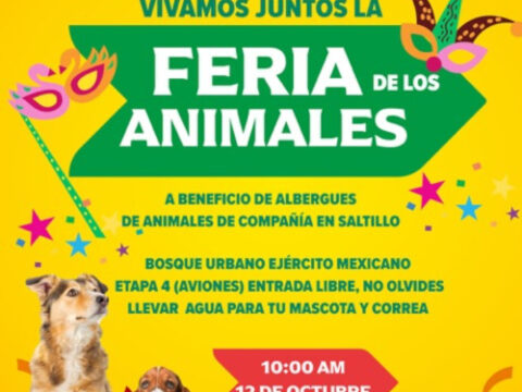 Saltillo, Coahuila de Zaragoza; 9 de octubre de 2025.- El Gobierno del Estado de Coahuila de Zaragoza, a través de la Secretaría de Medio Ambiente, invita a todas las familias coahuilenses a participar en la Feria de los Animales, que se llevará a cabo el domingo 12 de octubre de 2025 en el Bosque Urbano Ejército Mexicano, Etapa 4 (Aviones), en Saltillo, a partir de las 10:00 de la mañana;…
