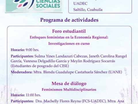 SALTILLO, Coahuila. 16 de octubre de 2025. Como parte de las actividades de laOctava Semana Nacional de las Ciencias Sociales del Consejo Mexicano deCiencias Sociales (COMENSO), la Universidad Autónoma de Coahuila a través delCentro de Investigaciones Socioeconómicas (CISE), llevará a cabo el 17 de octubrede 2025 el Foro Estudiantil “Enfoques feministas en la Economía Regional:Investigaciones en Curso y la Mesa de Diálogo “Feminismo multidisciplinario”. La Octava Semana Nacional de las…