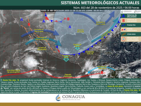 Saltillo, Coahuila de Zaragoza; 28 de noviembre de 2025.- La Secretaría de Gobierno, a través de la Subsecretaría de Protección Civil del Estado, informa que este día el frente frío número 16 se extenderá sobre el sureste del territorio nacional, propiciando chubascos y descargas eléctricas en diversas regiones de Coahuila. Durante el domingo 30 de noviembre, un nuevo frente frío se aproximará e ingresará al norte y noreste del territorio…