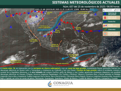 Saltillo, Coahuila de Zaragoza; 25 de noviembre de 2025.— La Secretaría de Gobierno, a través de la Subsecretaría de Protección Civil del Estado, informa que el frente frío número 16 se extenderá hoy sobre el norte y noreste del país. En interacción con la corriente en chorro subtropical y con un canal de baja presión, provocará chubascos en Coahuila. El Servicio Meteorológico Nacional emitió el siguiente pronóstico general para el…