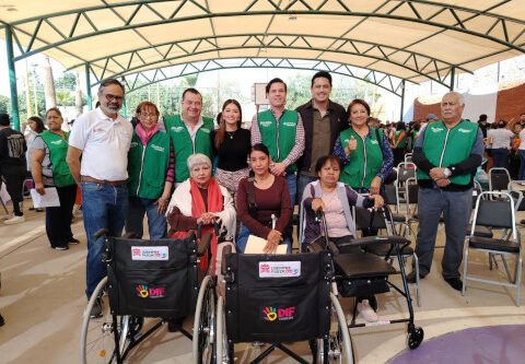 Román Cepeda y Liliana Salinas entregan aparatos funcionales, becas y prótesis de mama.