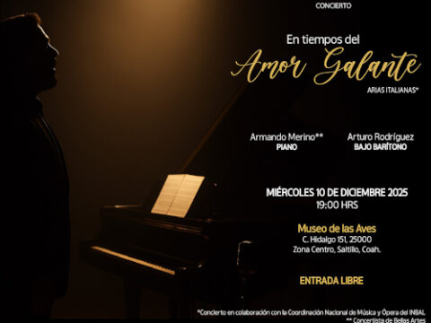 SALTILLO, Coahuila. 4 de diciembre de 2025. La Universidad Autónoma deCoahuila, a través su Coordinación de Difusión y Patrimonio Cultural, encolaboración con el Instituto Nacional de Bellas Artes y Literatura (INBAL), laCoordinación Nacional de Música y Ópera y la Secretaría de Cultura de Coahuila,presentarán el concierto “En tiempos del amor galante” Arias Italianas, un programaque celebra la tradición vocal barroca y preclásica. El recital con entrada libre se llevará a…