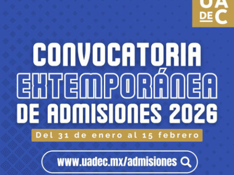 SALTILLO, Coahuila. 3 de febrero de 2026. La Universidad Autónoma de Coahuilaextiende el periodo de registro de admisiones a Bachillerato y Licenciatura hasta el15 de febrero, para quienes deseen ingresar a la máxima casa de estudios en elsemestre agosto-diciembre 2026. El proceso es por medio del portal www.uadec.mx/admisiones/ para el registro,deberán llenar los datos y subir su fotografía, al término del registro imprimir la boletapara realizar el pago en los…