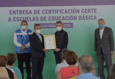· En Monclova la entrega fue a 67 centros escolares de las regiones Centro-Desierto y Carbonífera. Monclova, Coahuila de Zaragoza; a 5 de Mayo de 2021.- El gobernador Miguel Ángel Riquelme Solís entregó certificaciones del Sistema Estatal de Certificación a Escuelas de Educación Básica (CERTE) a planteles de las regiones Centro-Desierto y Carbonífera, en un evento que se realizó en la Primaria “El Chamizal”, de esta ciudad. El Mandatario estatal, acompañado…