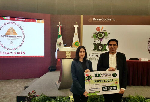 Mérida, Yucatán; 06 de noviembre del 2025.- Los coahuilenses Nirvana Astrid Galván Alvarado y Derek Enrique Rosales Arroyo fueron premiados con el tercer lugar en el XX Concurso Nacional “Transparencia en Corto 2025” por su video “El Condimento Secreto” con el que plasman sus propuestas a favor de la transparencia y la rendición de cuentas.