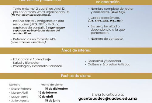 Envía tu artículo a gacetauadec@uadec.edu.mx, cabe mencionar que la publicación
