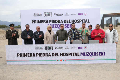 “En el hermoso Pueblo Mágico de Múzquiz en conjunto con la alcaldesa Laura Jiménez y el concilio de la Tribu Kickapoo colocamos la primera piedra del Hospital Muzquizeki, que fortalecerá la infraestructura de salud en la región Carbonífera y ofrecerá a nuestra gente servicios especializados de calidad y atención profesional de primera. Un proyecto esperado por la comunidad de esta región”, destacó el gobernador.