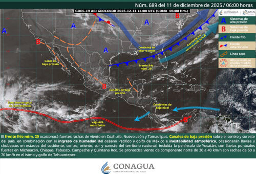 FRENTE FRÍO NÚMERO 20 GENERARÁ AMBIENTE FRÍO Y FUERTES RACHAS DE VIENTO.