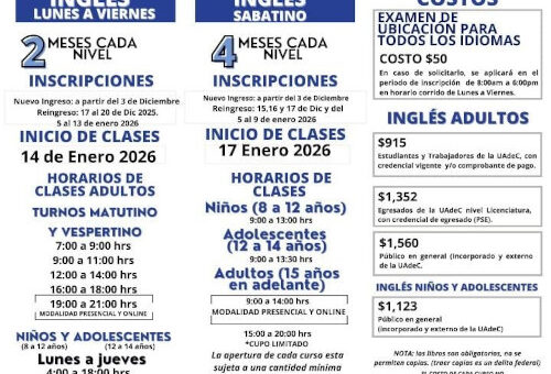 que los cursos sabatinos darán inicio el 17 de enero; para más información,