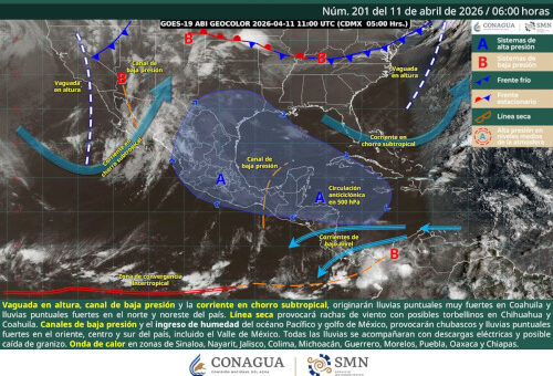 Saltillo, Coahuila de Zaragoza; 11 de abril de 2026.– La Secretaría de Gobierno, a través de la Subsecretaría de Protección Civil del Estado, informa que este día se prevén condiciones de inestabilidad atmosférica en la entidad, derivadas de la interacción de una vaguada en altura sobre el noroeste del país, un canal de baja presión en la Mesa del Norte, una línea seca en el norte de México y la corriente en chorro subtropical.