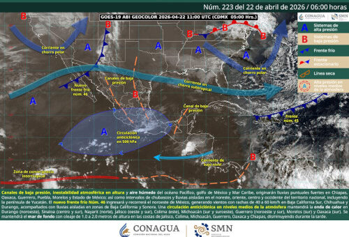Saltillo, Coahuila de Zaragoza; 22 de abril de 2026.– La Secretaría de Gobierno, a través de la Subsecretaría de Protección Civil del Estado, informa que este día se prevén lluvias y vientos en la entidad, derivados de la presencia de canales de baja presión sobre la Mesa del Norte y del ingreso del frente frío número 46 por el noroeste del país.