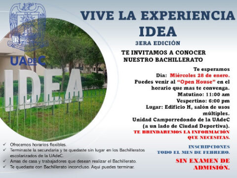 Invita UAdeC a “Vive la Experiencia IDEA”.