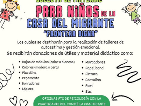 Convoca Escuela de Ciencias de la Salud de la UAdeC a Colecta de Material Didáctico para la Casa del Migrante “Frontera Digna”.