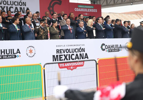 Melchor Múzquiz, Coahuila de Zaragoza; a 20 de noviembre de 2025.- El gobernador Manolo Jiménez Salinas, acompañado por la alcaldesa de Múzquiz, Laura Jiménez Gutiérrez, así como por los titulares de los poderes Legislativo y Judicial del Estado, Luz Elena Morales Núñez y Miguel Felipe Mery Ayup, respectivamente, presidió el desfile cívico deportivo para conmemorar el 115 aniversario del inicio de la Revolución Mexicana, ceremonia que se llevó a cabo…