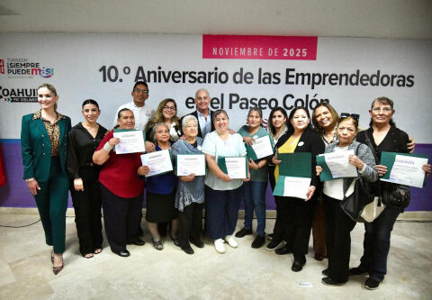 Torreón, Coahuila. A 20 de noviembre de 2025. En el marco del décimo aniversario del Paseo de las Emprendedoras del InstitutoMunicipal de la Mujer (IMM), esta mañana el alcalde Román Alberto CepedaGonzález entregó reconocimientos a quienes forman parte de este programa, queademás de impulsar el desarrollo económico de sus familias, busca ofrecer unespacio que inspire su fuerza, creatividad y resiliencia. El Presidente Municipal felicitó a las mujeres emprendedoras y sus…