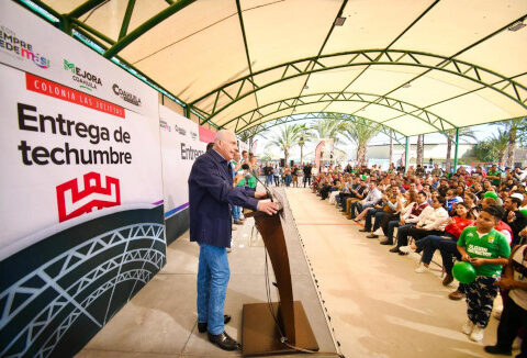 Torreón, Coahuila. A 21 de noviembre de 2025. Con una inversión cercana a los 2.5 millones de pesos, este viernes el alcaldeRomán Alberto Cepeda González entregó una nueva techumbre a los vecinos dela colonia Las Julietas, como parte del programa de rehabilitación de espaciospúblicos para fomentar el deporte y la convivencia familiar. En su mensaje, el Presidente Municipal destacó que esta obra es parte de laspolíticas públicas coordinadas entre su…