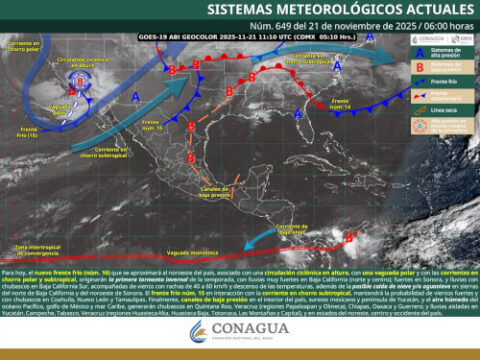 Saltillo, Coahuila de Zaragoza; 21 de noviembre de 2025.— La Secretaría de Gobierno, a través de la Subsecretaría de Protección Civil del Estado, informa que el frente frío número 15 se extenderá sobre el noreste de México y continuará interactuando con la corriente en chorro subtropical, manteniendo la probabilidad de vientos fuertes y lluvias con intervalos de chubascos en Coahuila. El Servicio Meteorológico Nacional emitió el siguiente pronóstico general para…