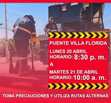 Torreón, Coahuila. A 20 de abril de 2026. Con la finalidad de reforzar los últimos detalles de la obra del Sistema Vial VillaFlorida, este lunes el personal del Sistema Integral de Mantenimiento Vial (SIMV),realizará trabajos de colocación de micro carpeta debajo del puente, motivo por elcual se implementará el cierre de esta vialidad en horario nocturno. El titular de la dependencia, Víctor Manuel Navarro Arratia, detalló que las laboresse llevarán…